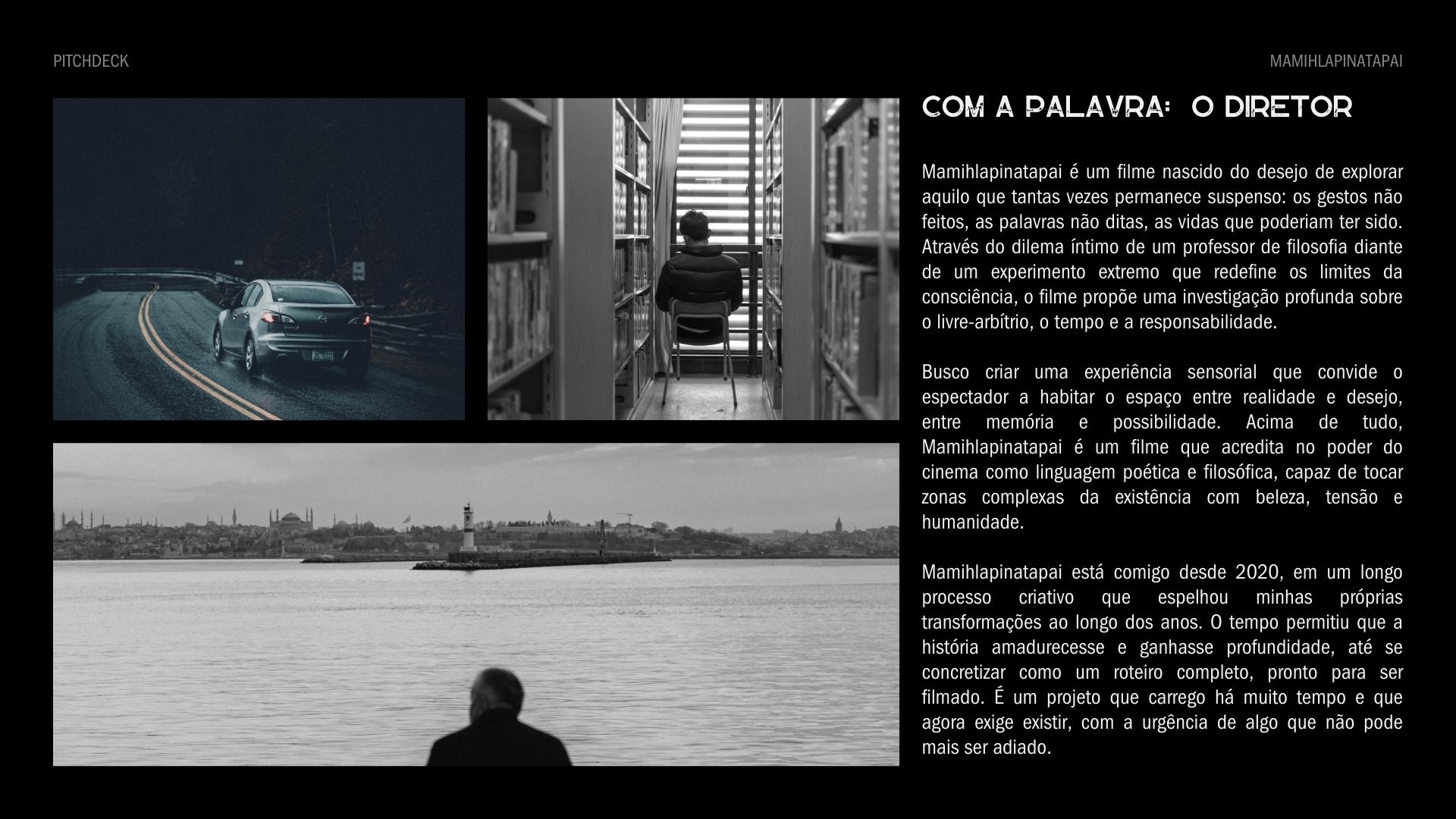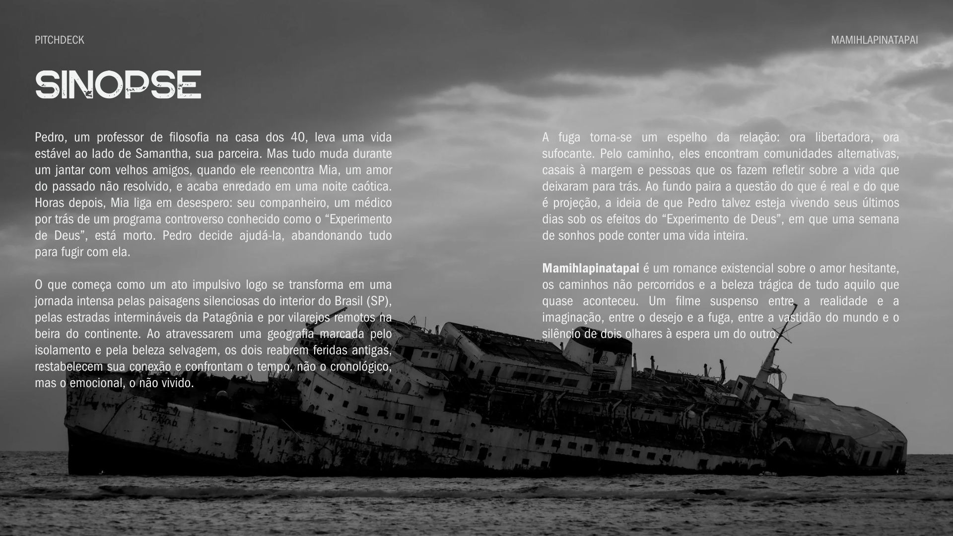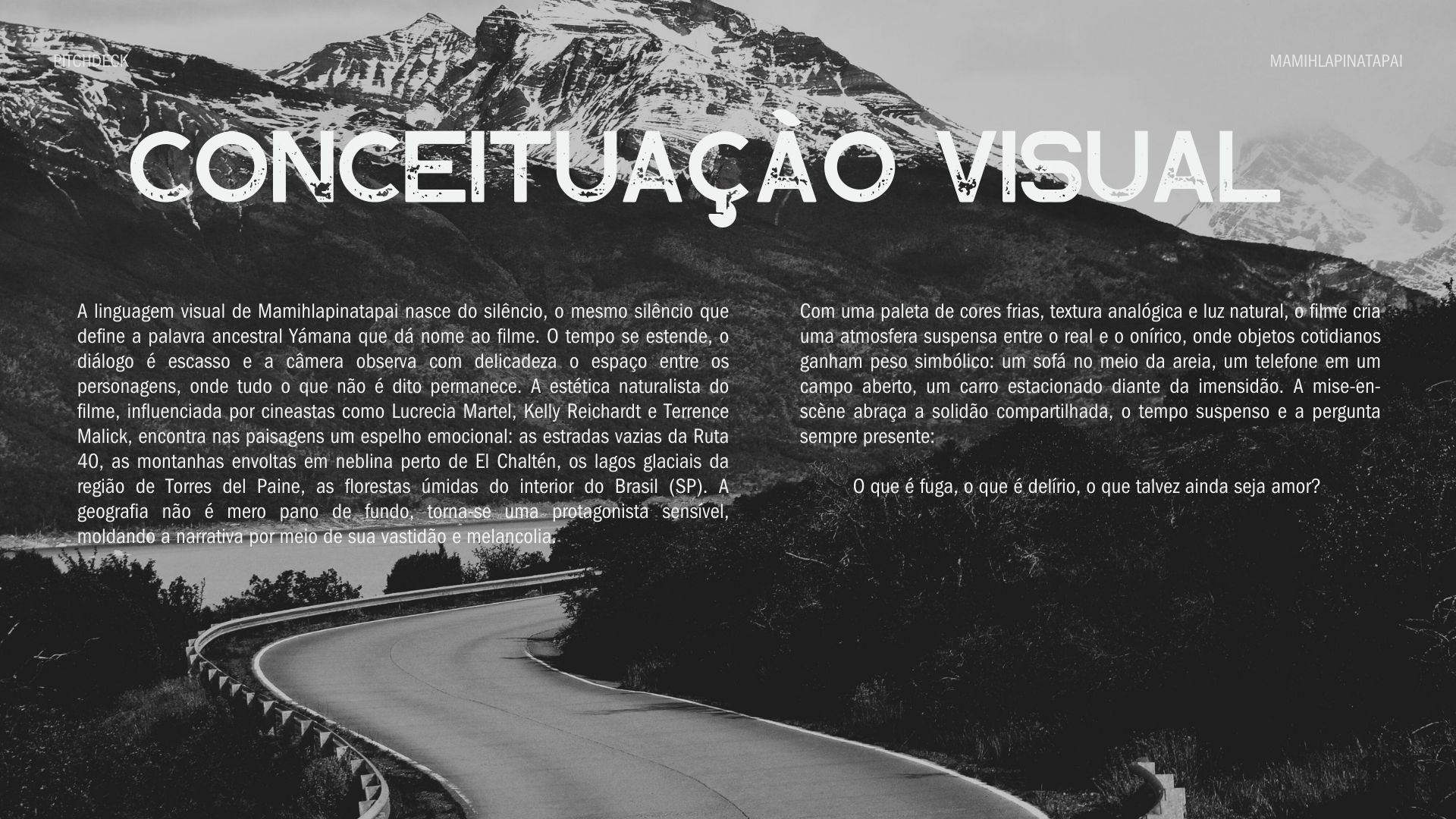 Mamihlapinatapai é um romance existencial sobre o amor que hesita, os caminhos não trilhados e a beleza trágica de tudo aquilo que quase aconteceu. Um filme entre o real e o imaginado, entre o desejo e a fuga, entre a vastidão do mundo e o silêncio de dois olhares que esperam um pelo outro.